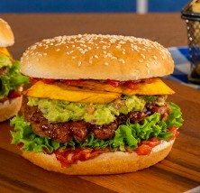 “A perfectly grilled burger bursting with flavor in every bite.”